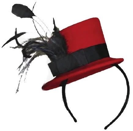 Mini Edwardian style top hat with feathers and a bow created in wool felt in black or red.