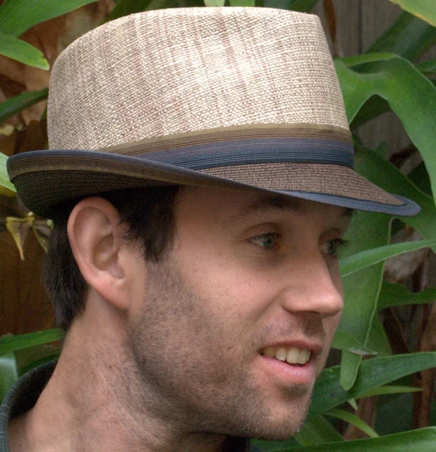 Straw fedora hat for the Kentucky derby in a 2-tone Phillipine Raffia crown and toyo braid brim with an ombre band and edge binding unifying the contrasting colors for a fantastic look.