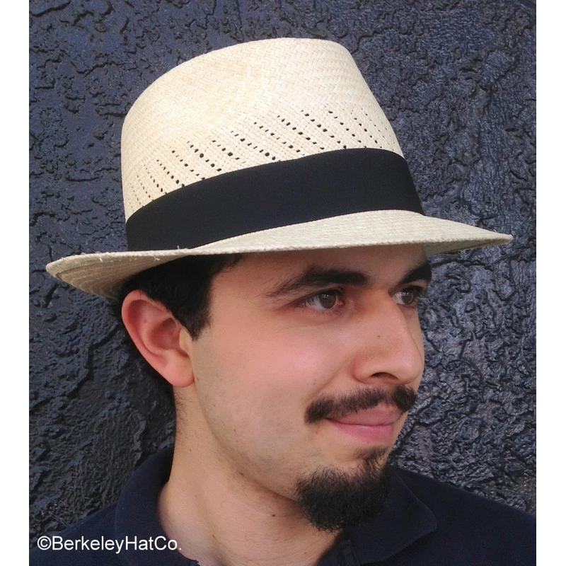 Natural straw fedora with a grosgrain outer band. These are genuine Panama hats handwoven in Ecuador.Â