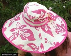 On Sale – Women’s summer wide brim flower print cloth covered straw sun hat with self bow.